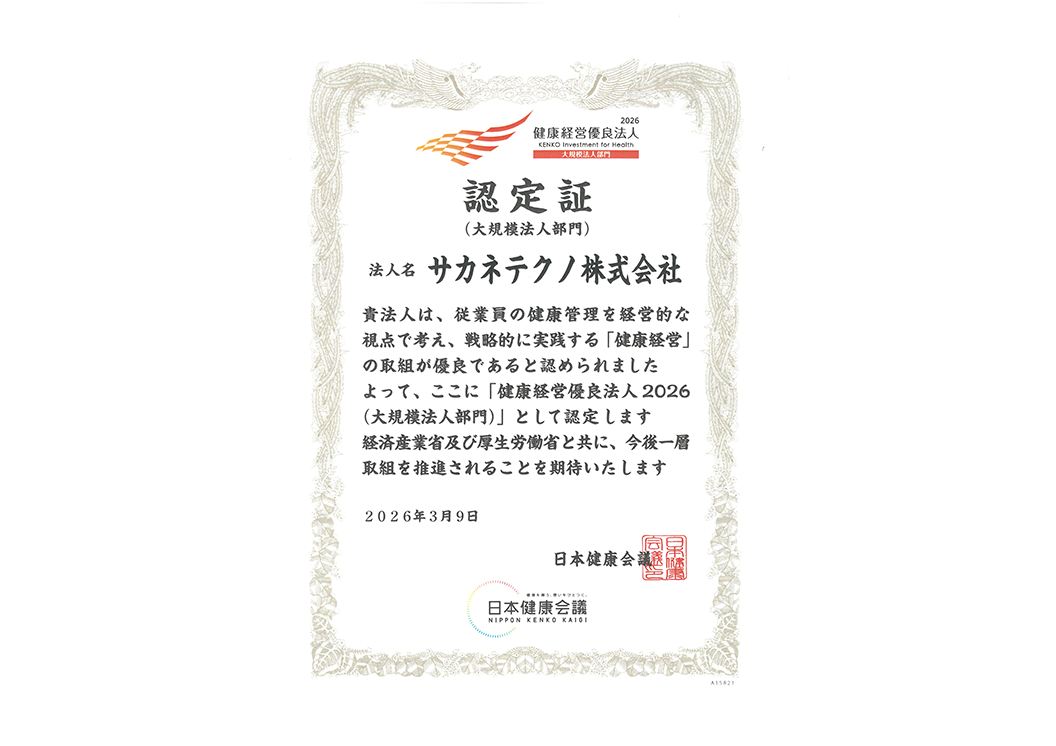| 令和8年3月 | 健康経営優良法人2026(大規模法人部門)認定 |