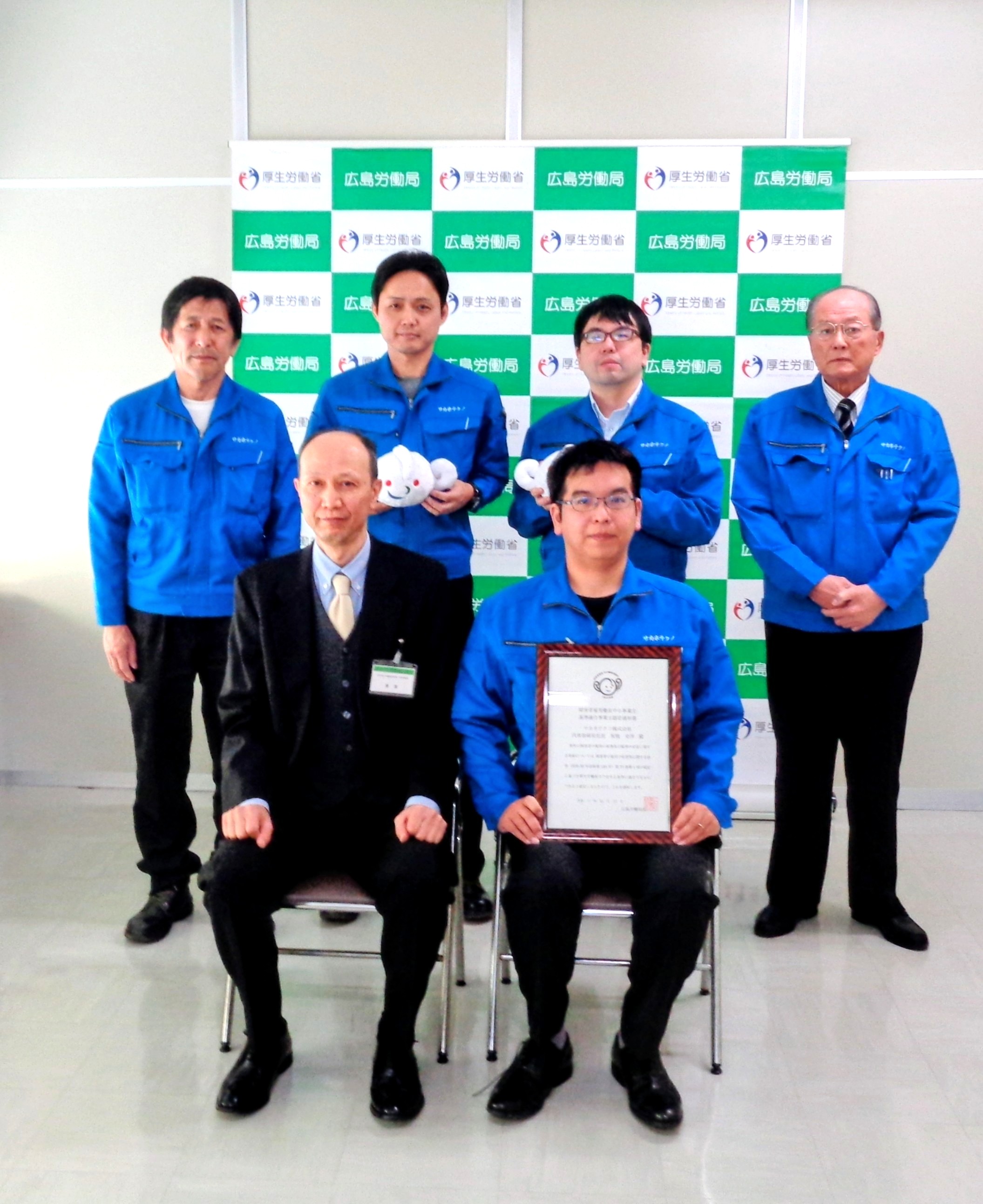 広島労働局より厚生労働省”もにす”の認定証を授与していただきました。大竹で2社目!子会社以外では初☆
